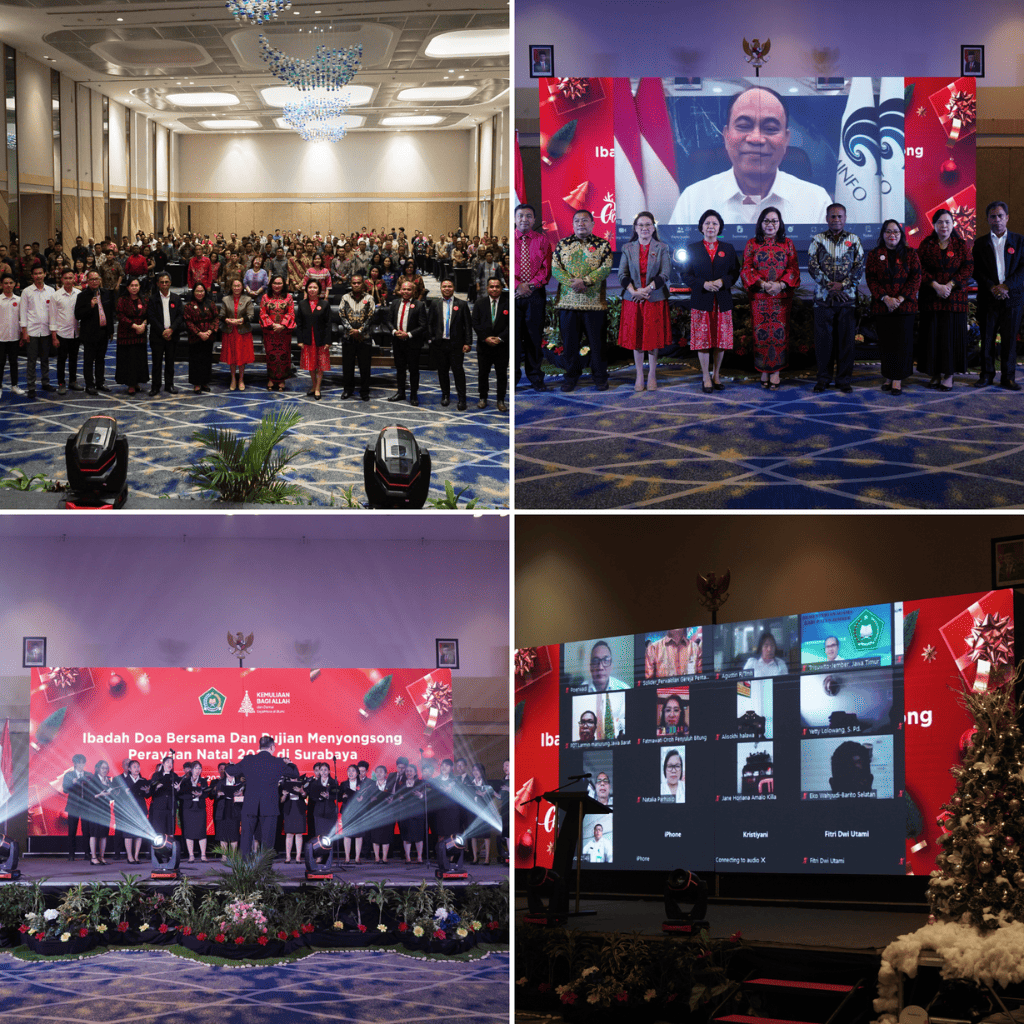 This event was held in conjunction with the Socialization of the National Christmas Implementation as well as a Joint Prayer and Worship Service in Preparation for the National Christmas. It was attended by the Minister of Communication and Information, who also serves as the Chairperson of the National Christmas Committee, Budi Arie Setiadi (virtually); the Director General of Christian Community Guidance, Jeane Marie Tulung; the Director of Christian Religious Affairs, Amsal Yowei; the Director of Christian Education, Sudirman Simanihuruk; and the Rectors of State Christian Religious Higher Education Institutions (PTKKN). The event was also joined by representatives from both the Central and Local Committees of the National Christmas.