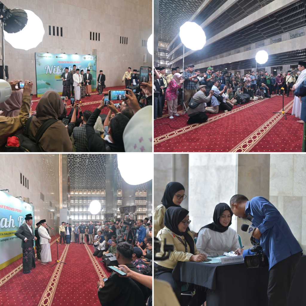 The Directorate General of Islamic Community Guidance (Ditjen Bimas Islam) of the Indonesian Ministry of Religious Affairs held a mass wedding event themed “Love in the Divine’s Blessing” as part of the Peaceful Muharram series at Istiqlal Mosque, Jakarta, on Saturday, June 28, 2025. A total of 100 couples from the Greater Jakarta area (Jabodetabek) were officially married in this event, serving as a tangible form of state service in facilitating lawful, legal, and blessed marriages.