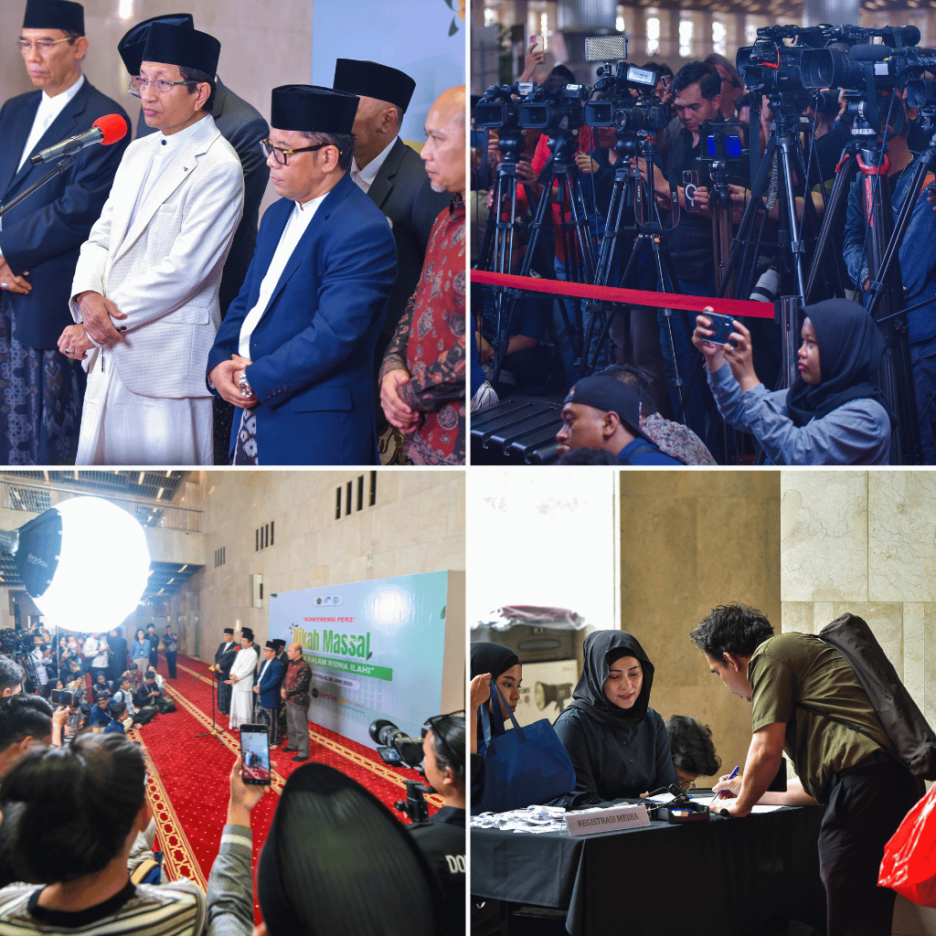 The Directorate General of Islamic Community Guidance (Ditjen Bimas Islam) of the Indonesian Ministry of Religious Affairs held a mass wedding event themed “Love in the Divine’s Blessing” as part of the Peaceful Muharram series at Istiqlal Mosque, Jakarta, on Saturday, June 28, 2025. A total of 100 couples from the Greater Jakarta area (Jabodetabek) were officially married in this event, serving as a tangible form of state service in facilitating lawful, legal, and blessed marriages.